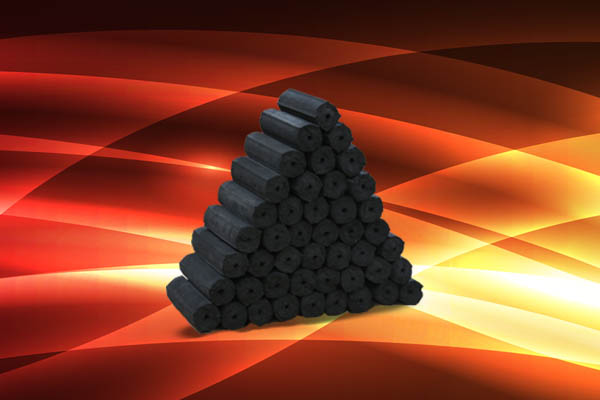Charcoal briquettes are shaped in a cylindrical form, easy to pack and use.